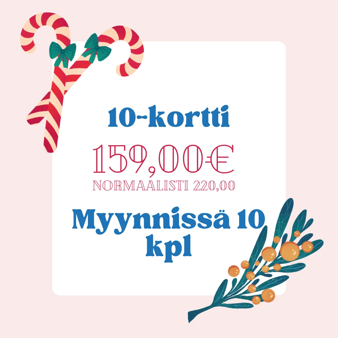 10-kortti joulupakettiin. 10-kortti sisältää 10 kappaletta päivälippuja. 10-kortti ei ole henkilökohtainen, mutta päiväkortteja ei voi siirtää uselalle eri kortille.