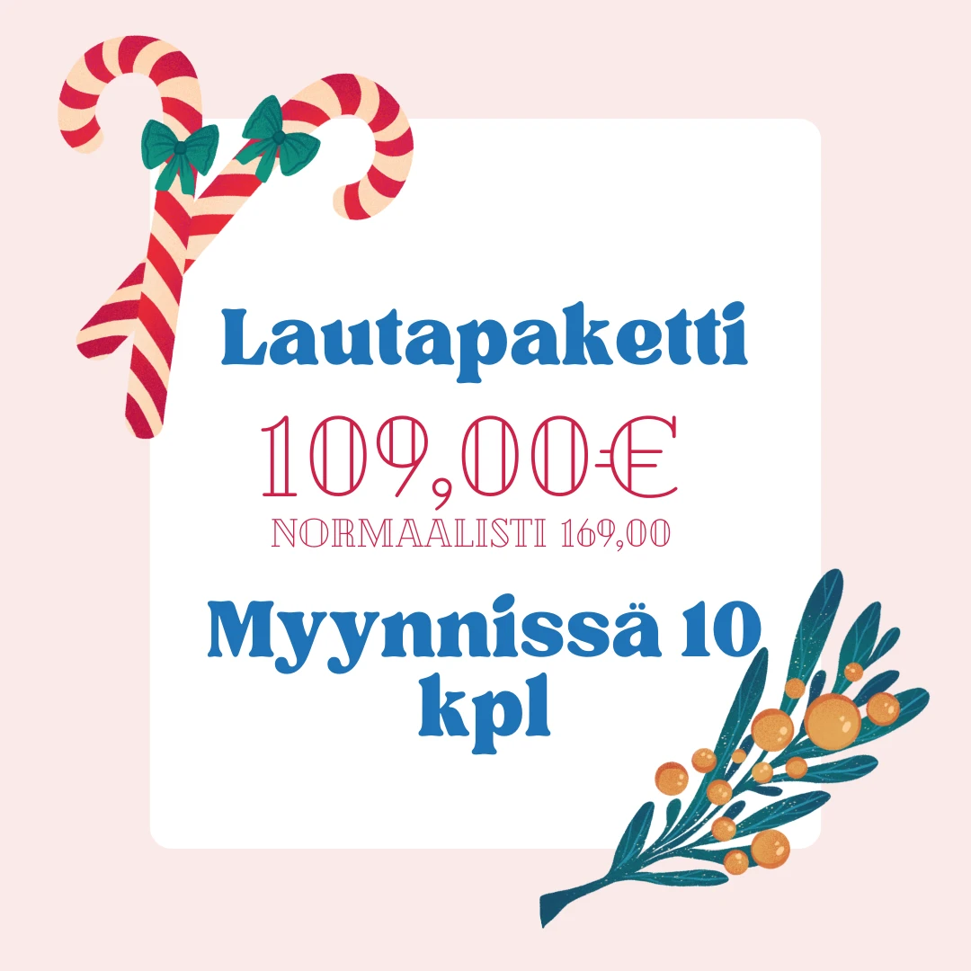 Välinekausikortti, joka koskee perustason lumilautoja. Pakettiin kuuluun lumilauta, siteet, kengät ja kypärä käyttöön koko kaudeksi. Välineitä saa käyttää vapaasti myös muualla.